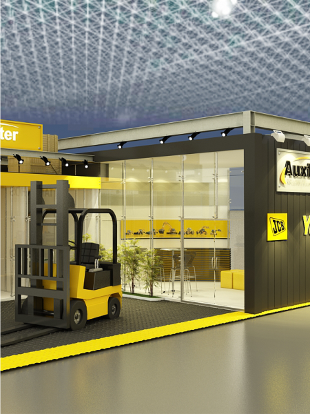 O stand da Auxter foi criado para maximizar a interação com equipamentos industriais, utilizando tecnologia e design dinâmico para atrair visitantes.