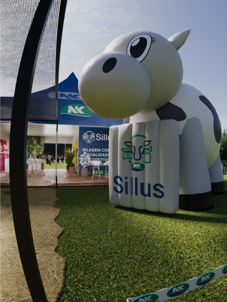 O estande da Sillus Syngenta NK na Feira Agro 2023 foi projetado com design sustentável e interatividade, destacando inovações agrícolas.